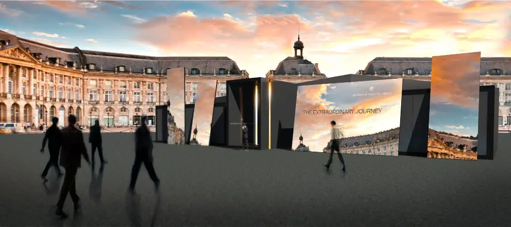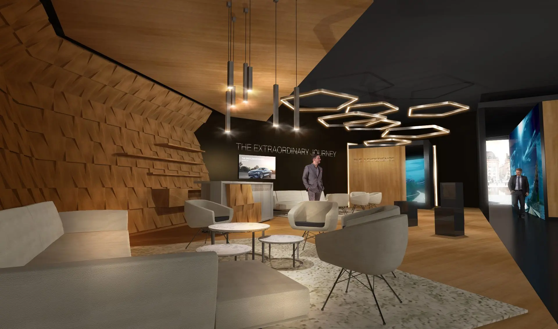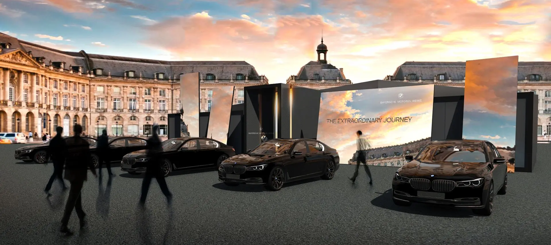 Cet événement BMW, intitulé « The Extraordinary Journey », a été imaginé comme une expérience célébrant le voyage et l’innovation. Ce pavillon éphémère aux lignes géométriques et aux surfaces miroir évoque la modernité et le mouvement. À l’intérieur, un parcours scénographique invite les visiteurs à une immersion sensorielle : projections panoramiques, jeux de lumière et espaces lounge mêlant bois et textures minérales créent une atmosphère à la fois technologique et raffinée.